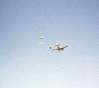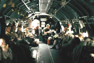 C-46's "tucked away" for the night, ready to fly again tomorrow.The C-46 "At Work" moving personnel. Sorry about the quality of the picture, but for a 55 year old camera on a vibrating aircraft (before lens stabilization) and using slow film this is pretty good. You can tell from the picture that this is the "first class" section. You didn't even get a small package of pretzels or peanuts on these flights and we all had to carry a parachute