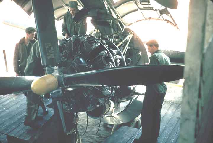 The specialists, instrument, hydraulic, electrical, sheet metal and as I remember Propeller worked out of this "shop". Notice the material on the ground (sand). We called it PSP, I don't whether that stood for Perforated Steel Plating or Portable Steel Plating. This material was used for runways, aircraft parking areas and taxiways. Any place that was used by an airplane.